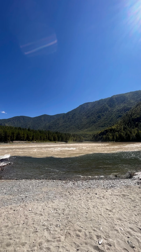 Слияние Чуи и Катуни: остановимся там, где встречаются две могучие реки. Бирюза Катуни против серо‑стальных потоков Чуи — природа создала здесь идеальный контраст (такой эффект увидим, если нам повезет!)