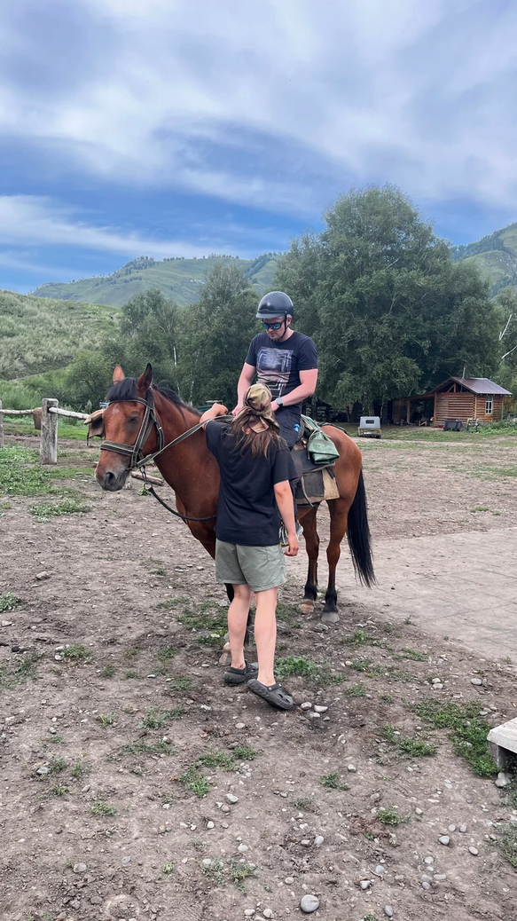 После мы поедем на конную базу, которая занимается полным циклом организации конных прогулок: от разведения и выездки лошадей до конструирования специальных мягких сёдел и обучения желающих основам верховой езды в условиях горной местности.