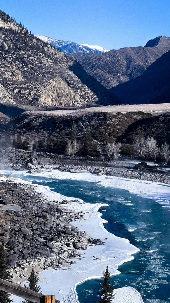 Слияние Чуи и Катуни: остановимся там, где встречаются две могучие реки. Бирюза Катуни против серо‑стальных потоков Чуи — природа создала здесь идеальный контраст (такой эффект увидим, если нам повезет!)