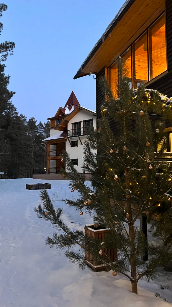 - Комфортабельные коттеджи в стиле современных шале из массива алтайского кедра и сосны или стильных номерах отеля.