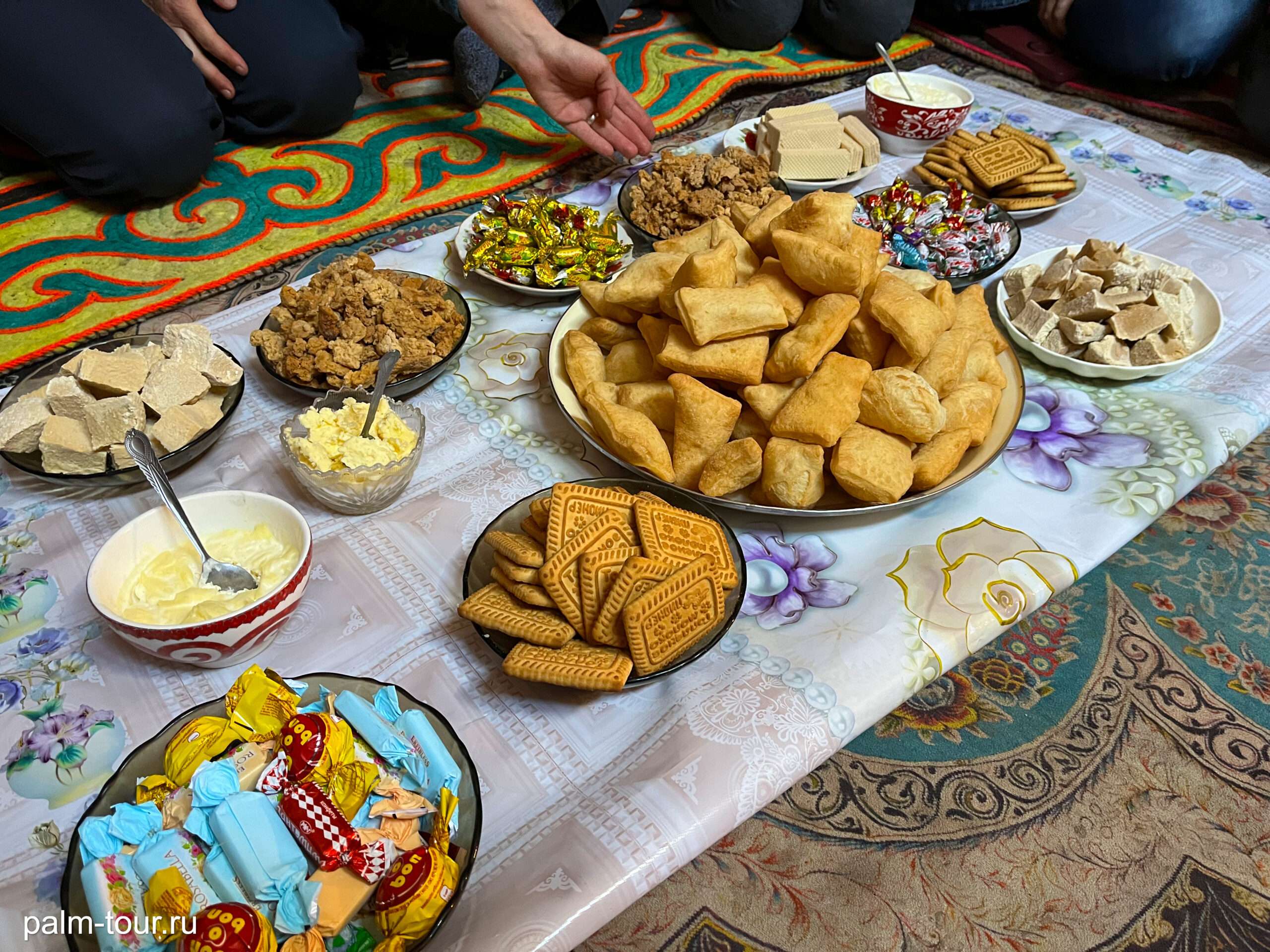 В самой юрте для нас накроют обед с традиционными блюдами национальной кухни.