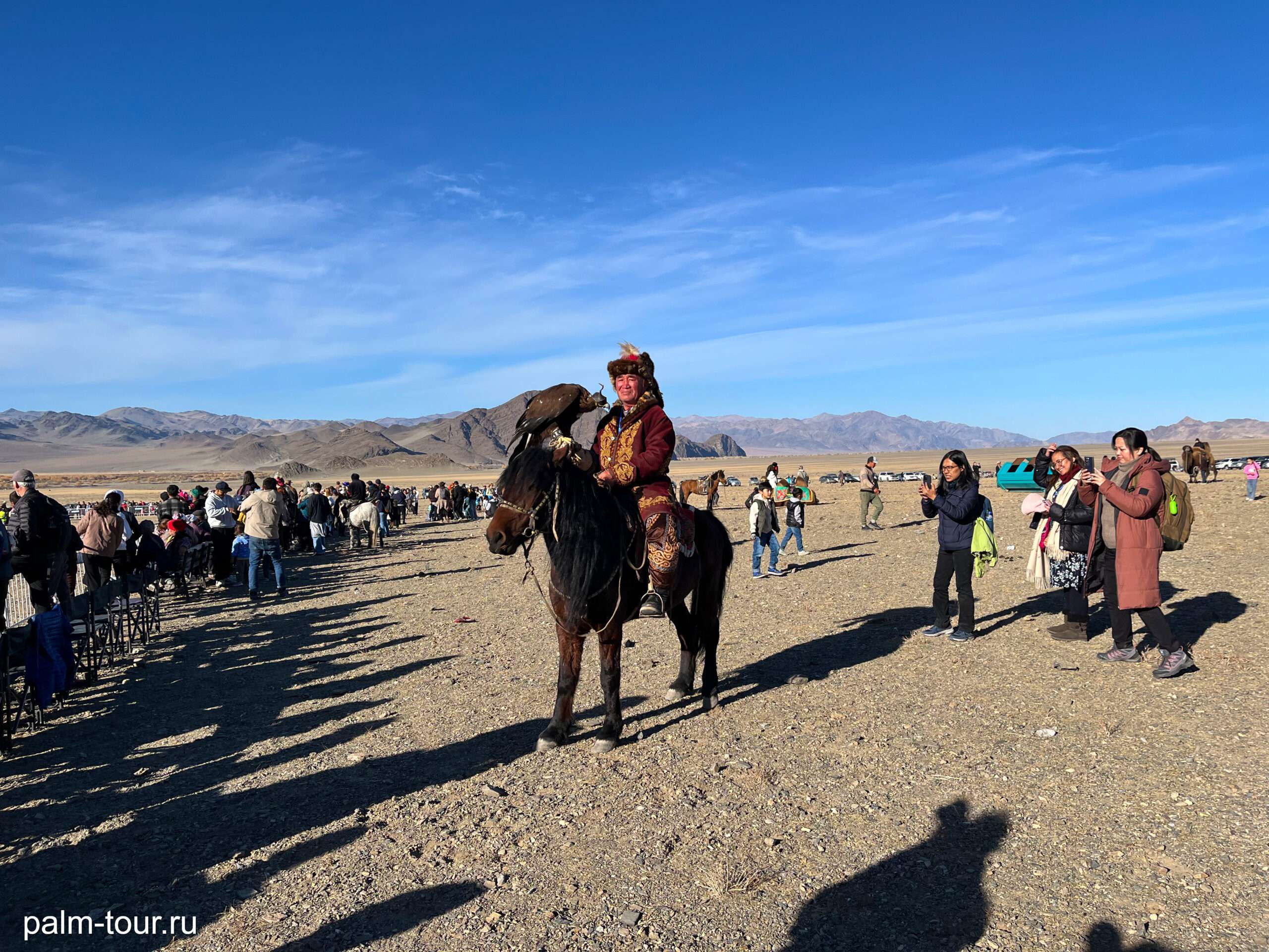 • Погружение в традиции: Представьте: бескрайняя степь, бархатные холмы и невероятно низкое синее небо. Вам навстречу скачут настоящие батыры в лисьих шубах, и у каждого на руке гордо восседает беркут с расправленными крыльями. Не зря сюда съезжаются фотографы и путешественники со всего мира. Мы погрузимся в атмосферу праздника на два полных дня. Вы увидите, как по одному зову орлы возвращаются к хозяину и демонстрируют охотничьи навыки.