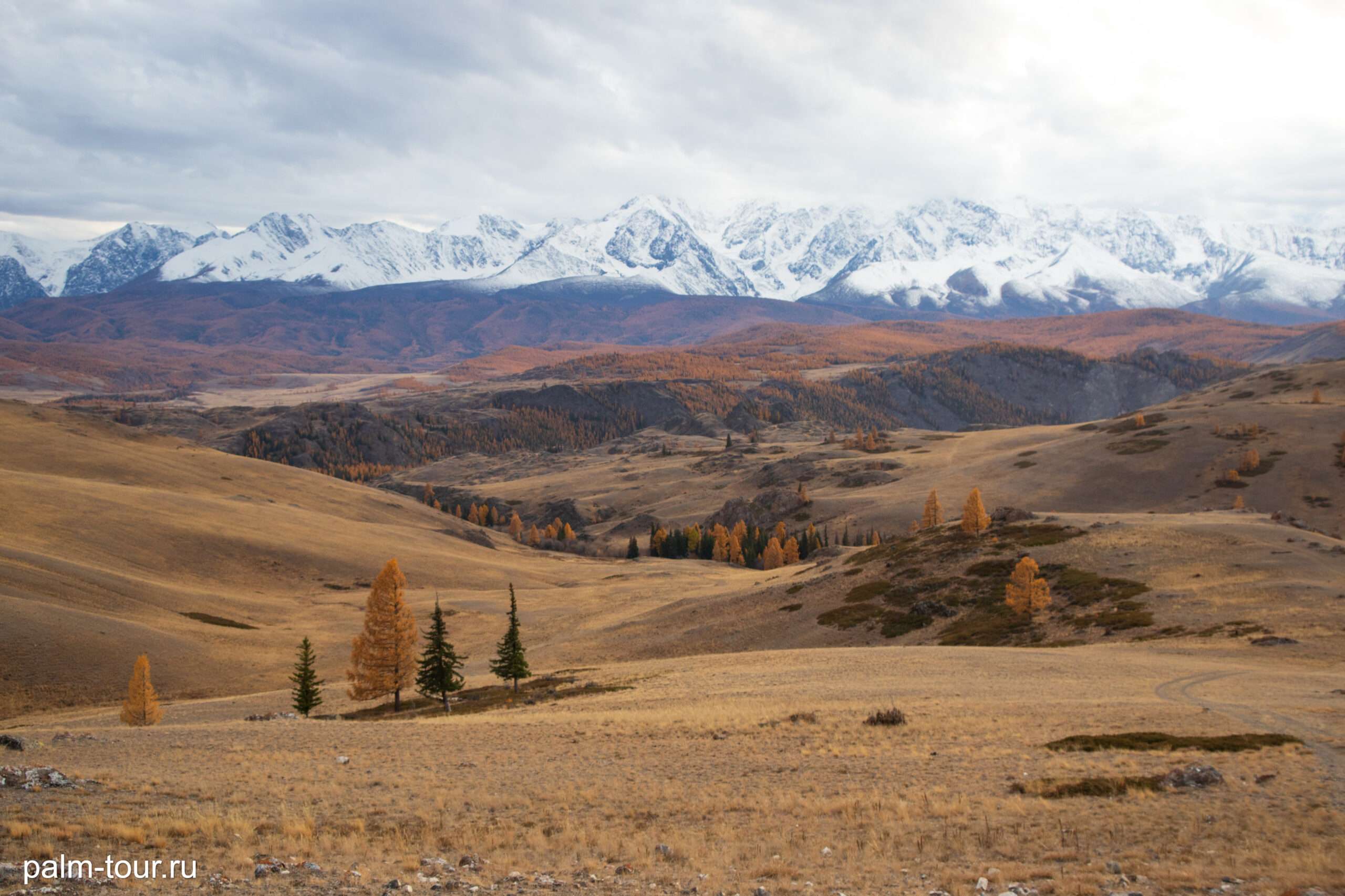 Сегодня мы продолжим путешествие по Чуйскому тракту, будем любоваться красотой осени и делать многочисленные остановки: на слиянии Чуи и Катуни, на берегах Чуи, смотровой площадке в Курайской степи. Полюбуемся рисунками Гейзерного озера и изучим древние петроглифы Калбак-Таша. Именно в это время ярко-желтые и золотые краски в природе на максимуме, а вершины гор припорошены снегом.