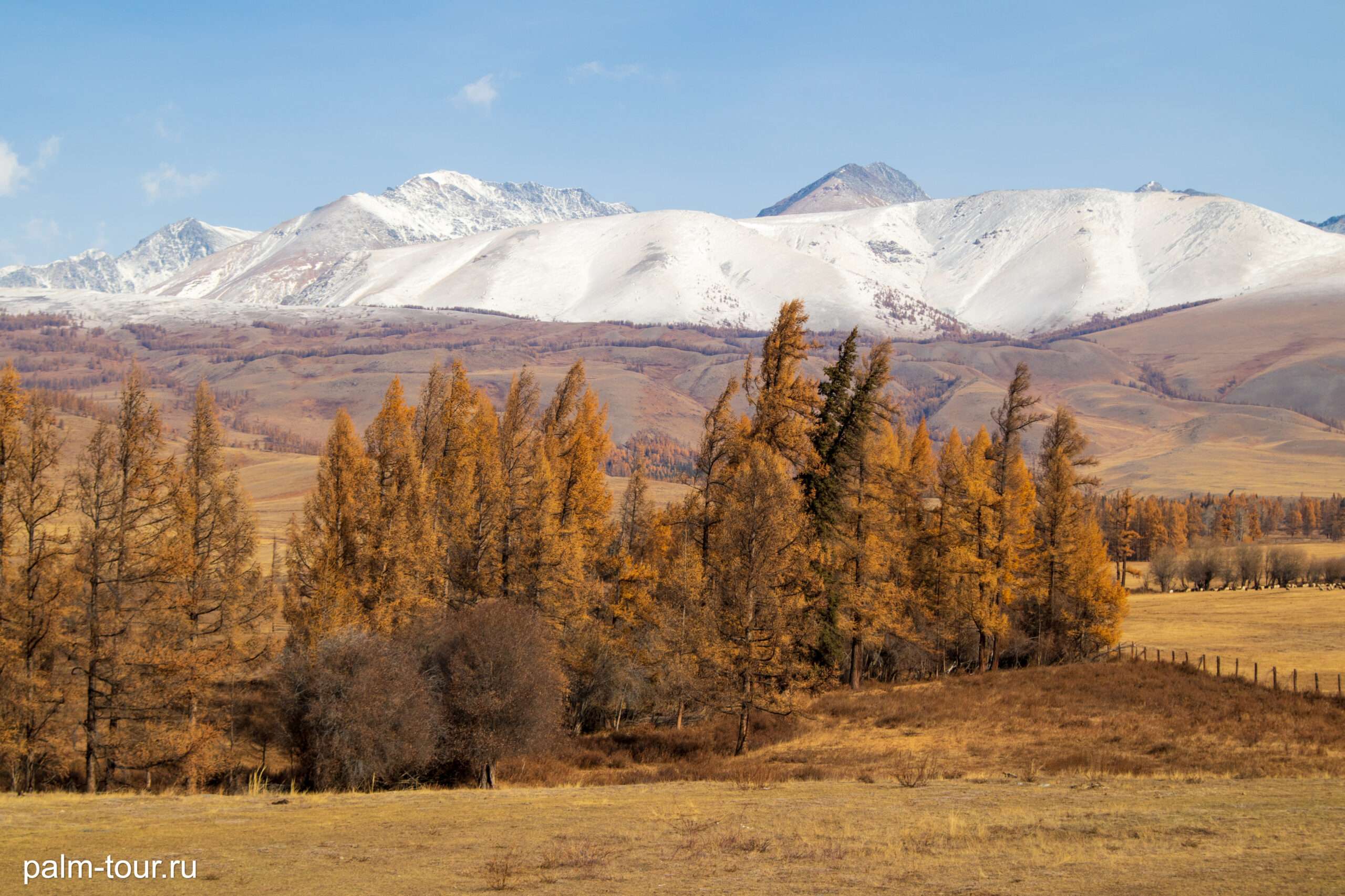 • Бонус. Золотая осень на Алтае: Мы поедем в самую прекрасную пору золотой осени, когда лиственницы загораются ярко-желтым цветом, реки становятся бирюзовыми, воздух абсолютно прозрачен, а вершины гор уже покрыты снегом. Конечно, мы будем делать остановки в самых живописных местах.