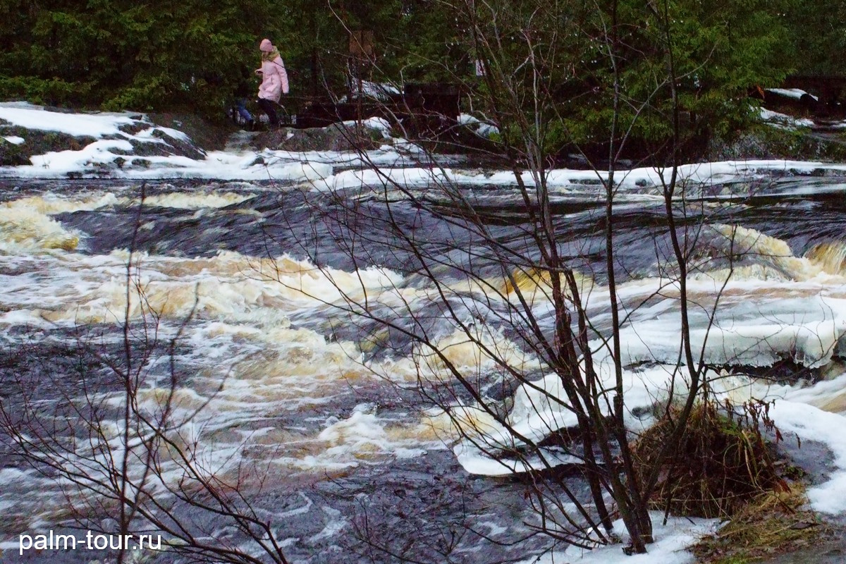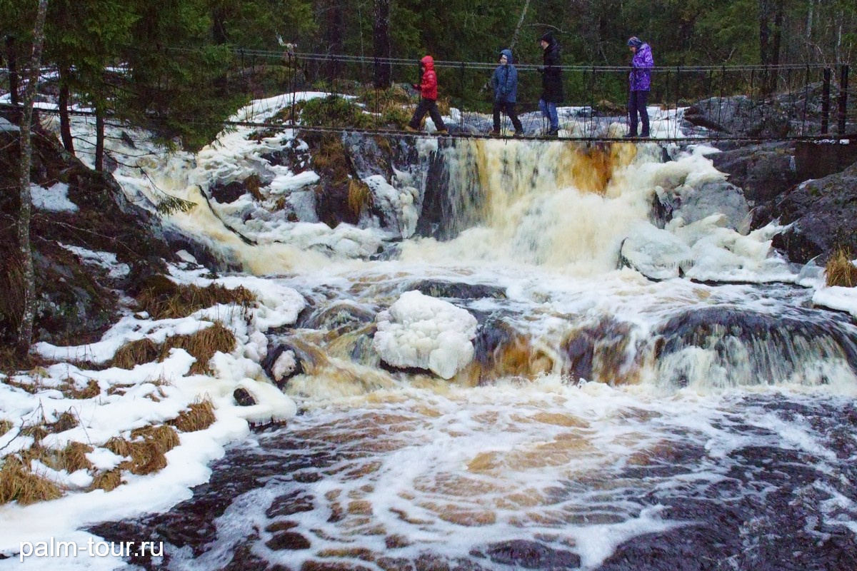 После мы отправимся к водопаду Ахвенкоски: несмотря на небольшую высоту 4 метра, водопад производит впечатляющий эффект благодаря мощным потокам воды, которые с грохотом обрушиваются вниз. В 1972 году у водопада снимали одну из сцен советского фильма «А зори здесь тихие».